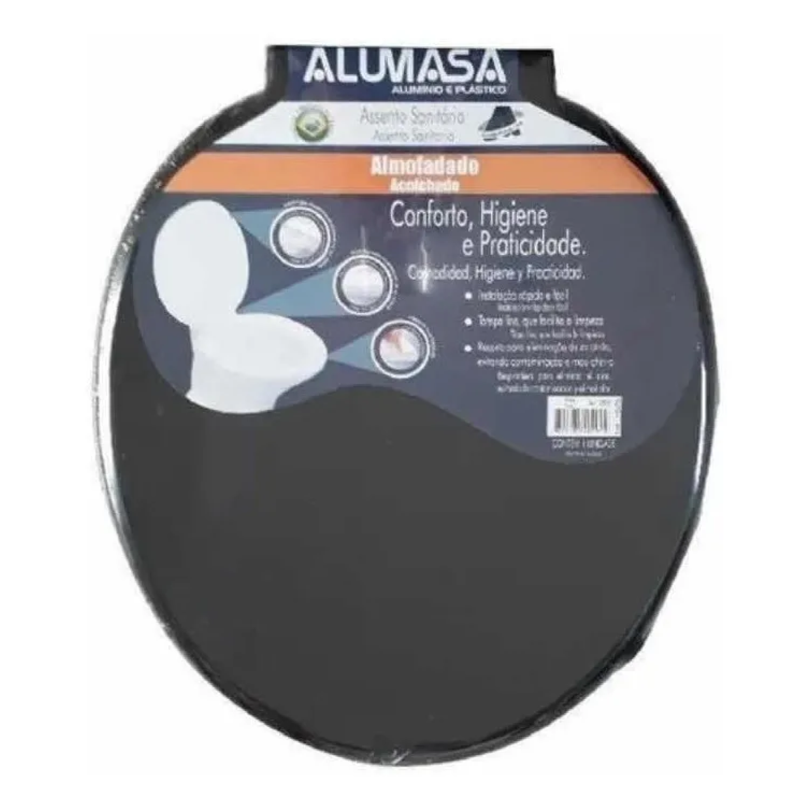 ASSENTO SANITARIO ALMOFADADO FLORENCA PRETO ALUMASA 2505 (CX:10UN)